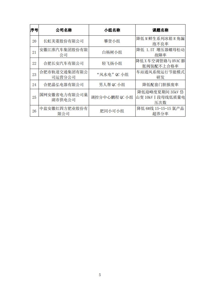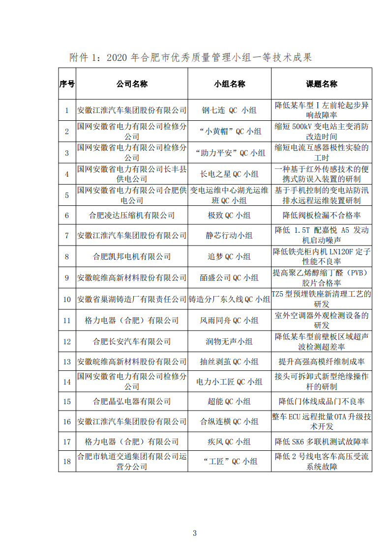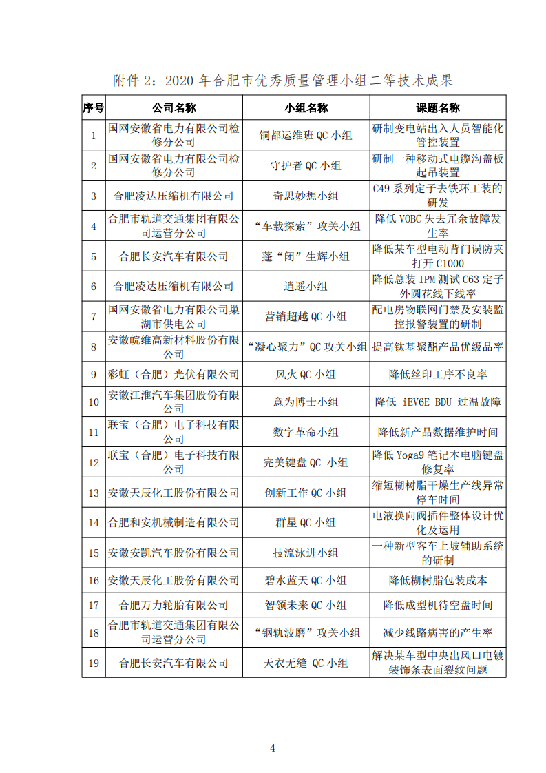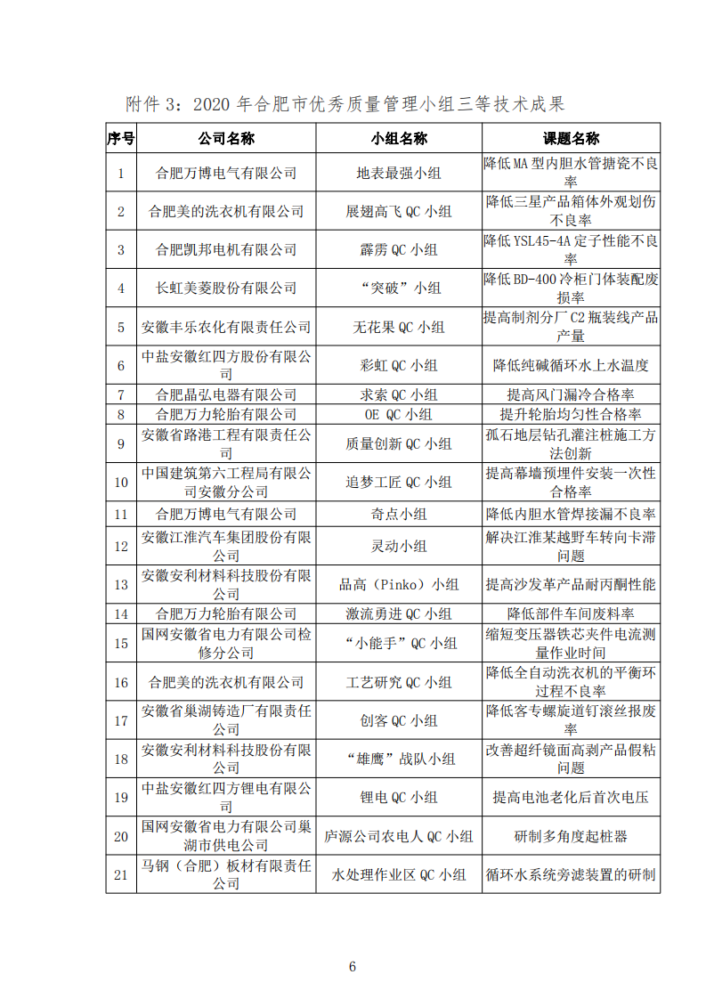 【公布】關于公布2020年合肥市優秀質量管理小組技術成果的通知