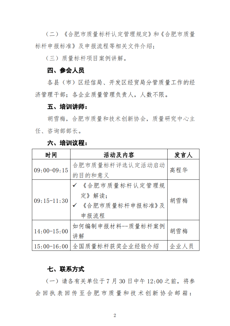 合肥市“質(zhì)量標桿”企業(yè)線上培訓報名表.docx